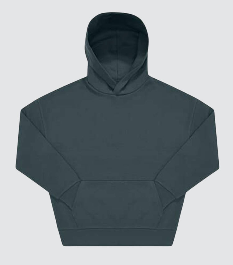 Genderneutraler Oversize-Hoodie mit abfallender Schulterpartie und lockerer Passform. Kapuze gefüttert, ohne Kordelzug. Hochwertige Bündchen und Saum in 1x1-Ripp. Mit Kängurutasche und Seitennähten. Material: 80 % ringgesponnene, einlaufvorbehandelte Baumwolle, 20 % recycelter Polyester. Innen weich angeraut. Waschbar bei 30 °C, bügelgeeignet. Größen S–XXL, 3XL–5XL auf Anfrage erhältlich.