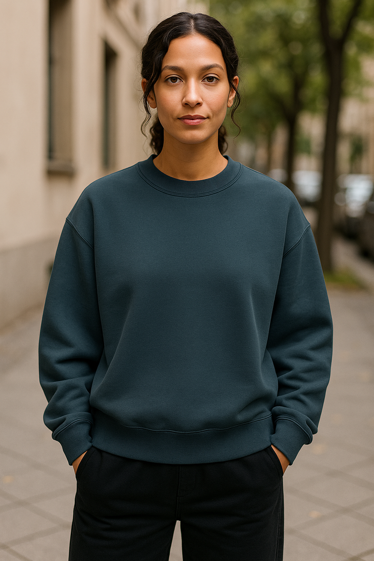 Ein Sweater, der Haltung zeigt – clean, stark, kompromisslos. Der genderneutrale Influence Sweater ist gemacht für alle, die es schlicht, hochwertig und authentisch mögen. In der Farbe Deep Teal, einem tiefen Blaugrün mit edlem Matt-Finish, wirkt er gleichzeitig ruhig und rebellisch – perfekt für deinen individuellen Print im Style Selector. Der feste Stoff fühlt sich robust an, die angeraute Fleece-Innenseite sorgt für weichen Tragekomfort. Kein Label, kein Schnickschnack – nur pure Rebel Energy.