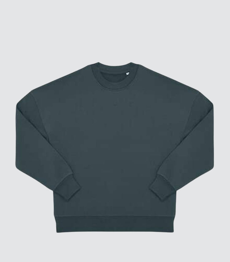 Genderneutraler Oversize-Sweater in der Farbe Deep Teal mit lockerer Passform und abfallenden Schultern. Strapazierfähiger Stoff aus 80 % einlaufvorbehandelter, ringgesponnener Baumwolle und 20 % recyceltem Polyester. Innen weich angeraut (Fleece). Hochwertige Bündchen und Saum in 1x1-Ripp. Mit Seitennähten. Gefertigt mit Technology (PST) für luxuriöse Haptik. Größen S–XXL, 3XL–5XL auf Anfrage erhältlich.